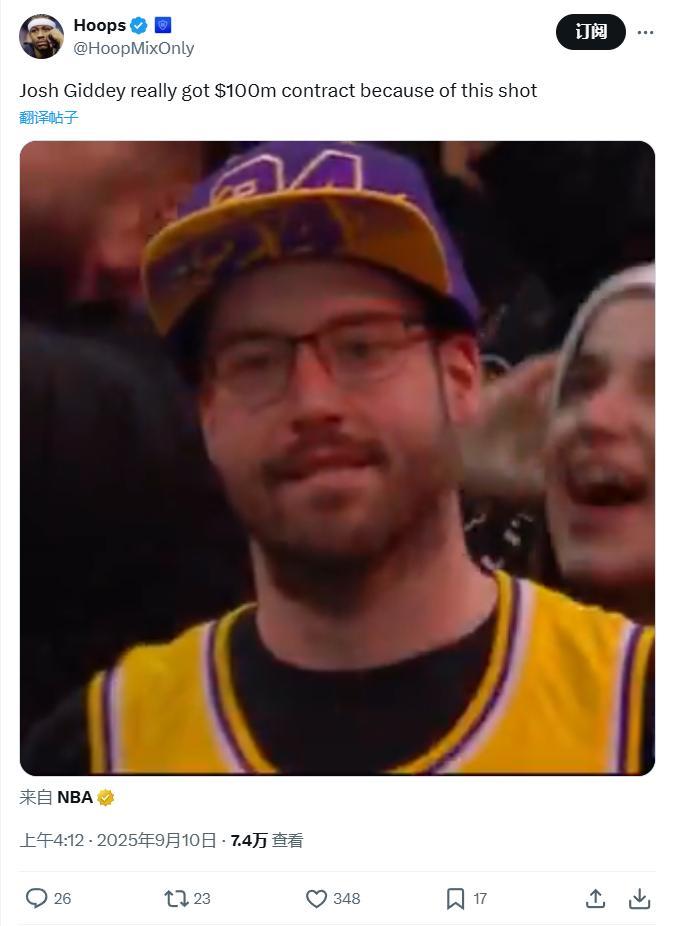 美媒调侃:吉迪因为三分绝杀湖人这球拿到了1亿的大合同